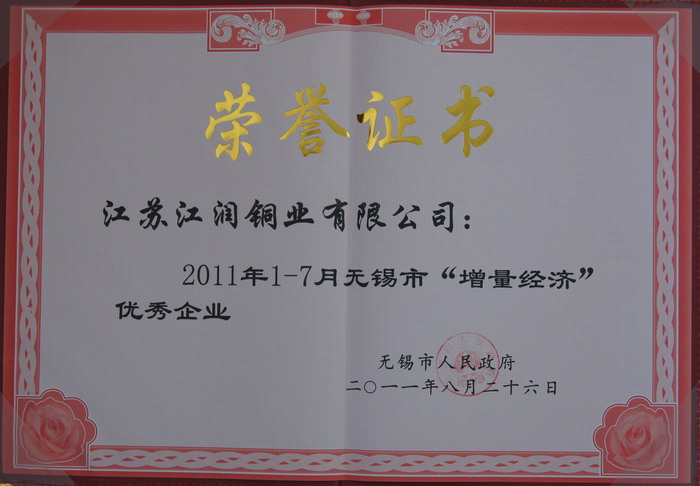 此次無錫市“增量經濟”優秀企業評比依據是今年前7個月企業銷售增量情況。作為本市龍頭企業,江潤銅業繼續發揮在資源整合能力、創新能力方面的優勢,努力將市場機遇轉化為經濟總量,呈現出強勁的發展勢頭。